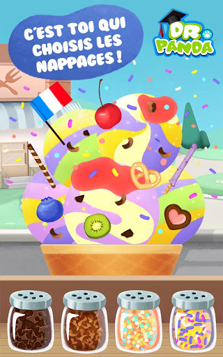 Chocolat ? Vanille ? Fraise ? Les trois !? C'est toi qui décides des recettes ! Dans Dr. Panda: Marchand de Glaces, tu peux mélanger les saveurs puis ajouter des éclats de cookies, du chocolat ou des noix afin d'obtenir la glace parfaite — joue avec les goûts et crée toujours plus de combinaisons !