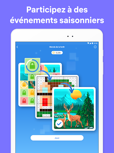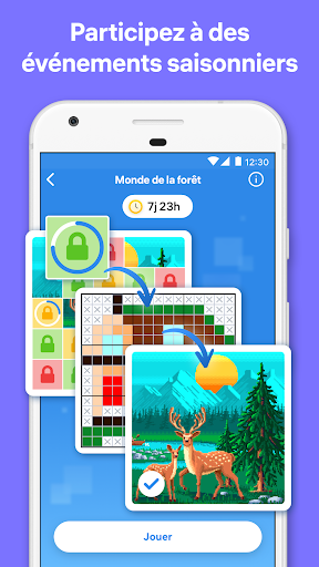 Ce nonogramme coloré est le jeu parfait pour toutes celles et ceux qui aiment les jeux de logique et de nombres comme le kakuro. Des tonnes de contenu vous attendent : défis quotidiens avec trophées, événements saisonniers avec énigmes logique de différents niveaux et cartes postales à collectionner ! Éclatez-vous avec notre casse-tête gratuit ! Mais attention : sous ses airs simplistes, ce jeu de logique mettra vos neurones en ébullition !