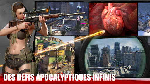 Tu devras tuer pour sortir des embuscades dans la neige, le désert et les caves, tu te retrouveras au sommet d’un gratte-ciel sans rien d’autre qu’un fusil de sniper, tu dois les éliminer avec un fusil à lunettes au milieu d’un pont dans ce jeu de zombie et de guerre FPS. Tu seras mis à rude épreuve lors d’événements et tu affronteras parfois d’autres survivants. Il y a aussi les classiques hôpitaux, prisons, îles et bien plus, qui n’attendent que toi pour être explorés.