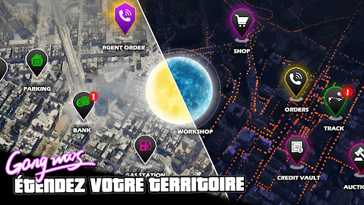 De Fusillade de Rue à Guerre de Territoire, tout le monde est sur le pont si vous voulez être le meilleur. Dirigez votre équipe de gangsters puisssants et prenez la ville du crime pour vous.