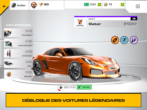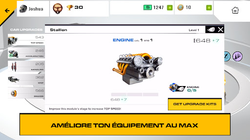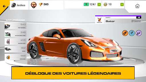 Personnalise ton garage avec des designs de voitures personnalisés. Règle les voitures pour en extraire chaque once de performance : moteurs, transmissions, carrosseries, suspensions, freins.