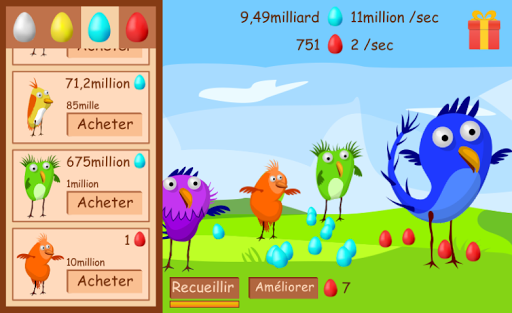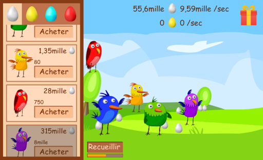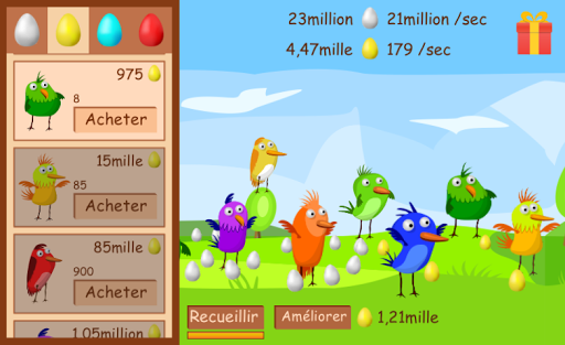 Les oiseaux portent des oeufs, pour lesquels vous pouvez acheter de nouveaux oiseaux.