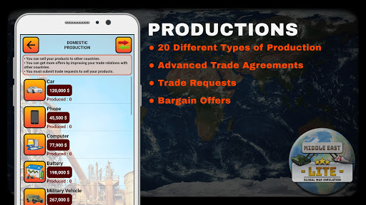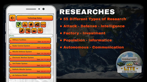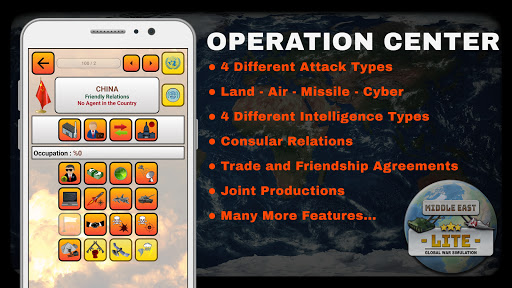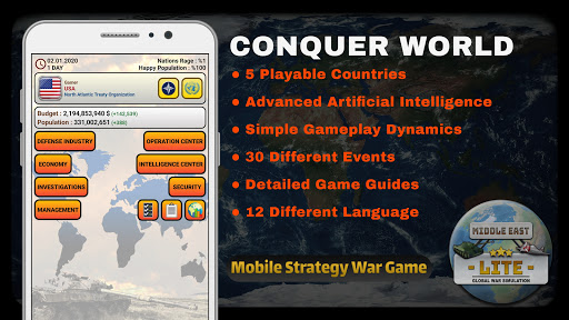 Simulation de la guerre mondiale Middle East Lite est un ver Y jeu réussi dans les catégories de match de guerre moderne, jeu de stratégie militaire, jeu de simulation et jeu de Tycoon sur les téléphones mobiles et les tablettes.