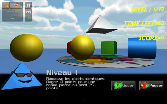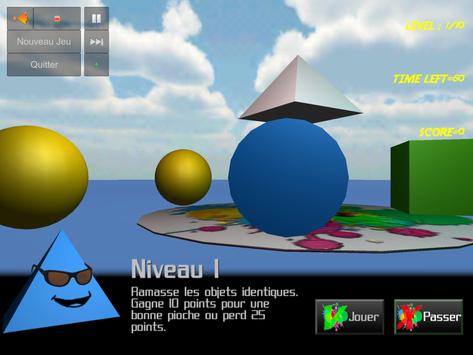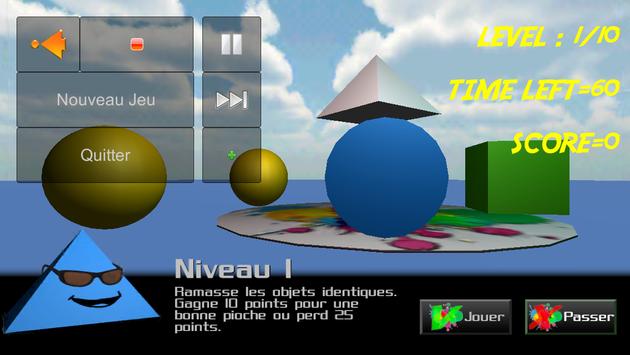 Niveaux 3 et 4: sélection de l’objet ayant la même forme (objets de même couleurs)