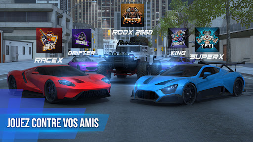 Faites la course en mode jeux de voiture en ligne et battez vos adversaires en temps réel. Rejoignez le chat en direct avec un jeu de voiture en ligne et un jeu de conduite gratuit. Faites la course avec vos amis dans de vraies voitures de course sur d'immenses pistes de ville et de méga rampes en 3D. Endommagez la voiture de votre adversaire avec le système de fusée dans le jeu de voiture en ligne.