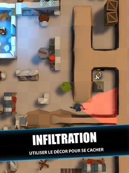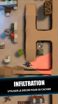 - INFILTRATION. Votre personnage se déplace silencieusement sur la carte et s'accroupit automatiquement lorsqu'il s'arrête, se cachant efficacement derrière le décor.