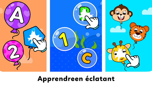 Faites éclater beaucoup de ballons et de bulles pour apprendre l'alphabet, les chiffres, les formes et bien plus encore.