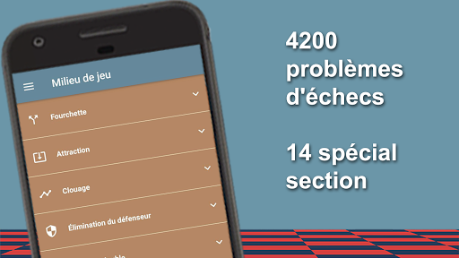Notre application contient 4200 problèmes d'échecs thématiques et plusieurs débuts d'échecs. Chaque problème révèle une sorte de Tactique ou de Ruse. Vous devez deviner le prochain mouvement d'échecs pour résoudre le problème et passer à la suivante.