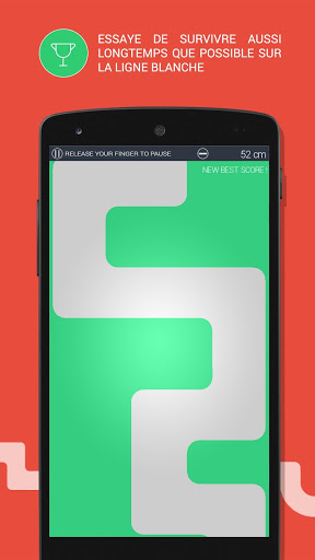 Ça n'a jamais été aussi facile de jouer, vous n'avez qu'à maintenir votre doigt sur l'écran et essayer de rester sur la ligne blanche aussi longtemps que possible…
