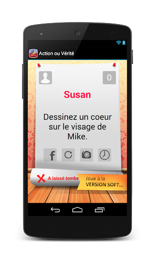 Veuillez télécharger notre autre version d'Action ou vérité qui prend en charge à la fois les actions soft et trash, nommée "Action ou Vérité" de Mangobird.