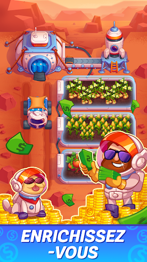 Idle Mars Colony: Clicker farmer tycoon est un jeu de simulation gratuit du genre clicker, où vous pouvez vous faire la main en tant que propriétaire d’une ferme spatiale. Gagnez de l’argent, automatisez le travail et profitez d’une aventure passionnante !