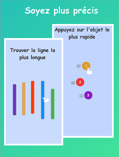 Jeux de précision: améliorez les niveaux de précision en trouvant les objets qui se déplacent le plus rapidement, en mesurant les hauteurs et bien d'autres jeux.