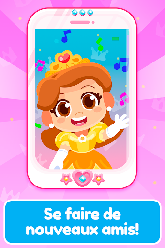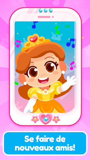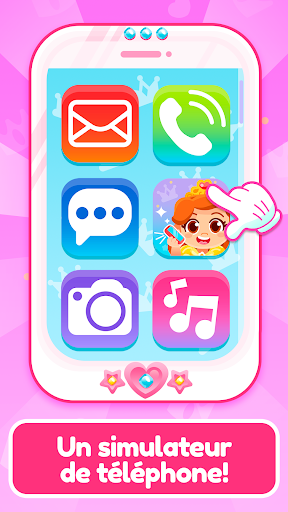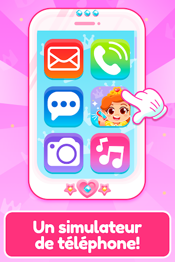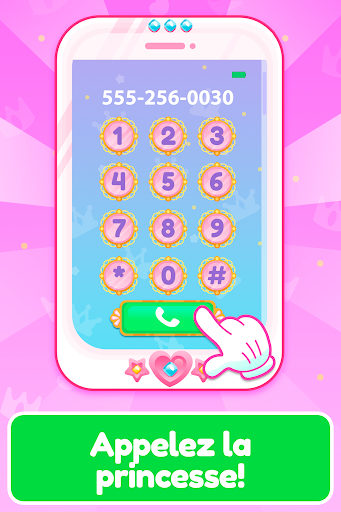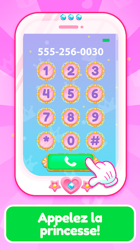 Amusez-vous à parler à la princesse. Ce jeu de fille simule un vrai téléphone, avec des sons amusants et des boutons colorés. Le téléphone sonne, reçoit un appel et commence à parler avec une voix très amusante pour les enfants.