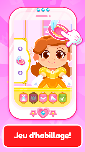 Il leur permet de jouer dans un monde magique de princesse pendant qu'ils identifient les couleurs, choisissent des combinaisons et participent à déchiffrer comment jouer à chaque mini-jeux pour enfants.