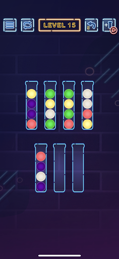 Essayez de trier les balles colorées dans le tube à essai jusqu'à ce que toutes les balles avec la même couleur reste dans le même tube à tester. Dans ce processus, vous apprécierez le plaisir du tri de la vie. Pour réfléchir, stratégiser et prédire chaque mouvement, votre cerveau sera exercé..