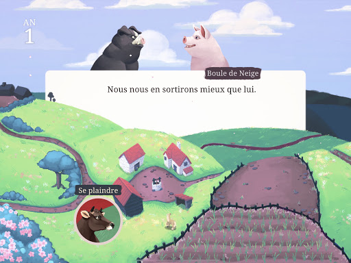 Dans La Ferme des Animaux d’Orwell, les animaux se sont libérés de leurs maîtres humains qui les exploitaient, et ont pris le pouvoir. Attribuez-leur des tâches, gérez leurs ressources, choisissez leurs lois et dirigez leur propagande. Déterminez quels animaux devront faire des sacrifices, et lesquels seront « plus égaux que d’autres ».