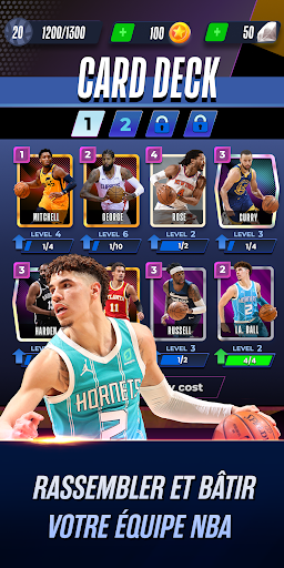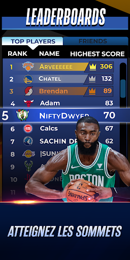 Dans NBA Clash, soyez plus rusé pour dominer votre adversaire au cours de matchs rapides de 3 minutes. Démarquez-vous, shootez à mi-distance ou sur un stepback à 3 points, à vous de trouver les bonnes actions et stratégies pour l'emporter. Créez votre équipe NBA de rêve, montez au classement, et écrasez la concurrence !