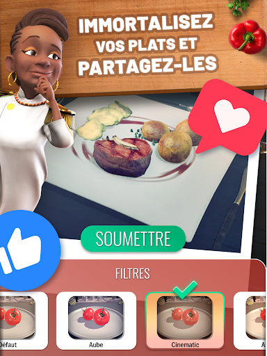 Entrez dans la peau d’un Chef et révélez vos talents en cuisine. Combinez des centaines d’ingrédients et techniques pour créer des milliers de plats uniques. Dressez vos assiettes, décorez-les en toute liberté et personnalisez votre table. Un challenge autant gustatif qu’esthétique !