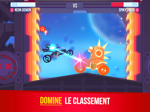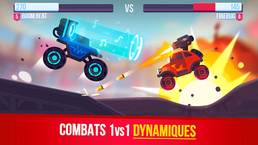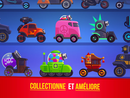 Choisis parmi une dizaine de machines puissantes. Lasers, bombes, mini-guns et boucliers : améliore ton véhicule avec des armes mortelles et détruis ton adversaire pour remporter le combat !