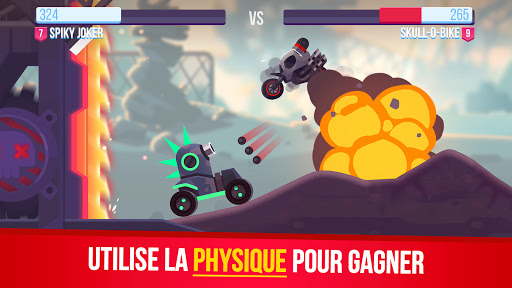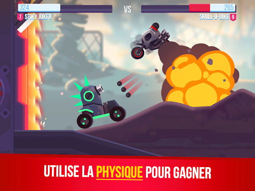 Prends le contrôle d'un puissant véhicule de combat et affronte des ennemis dans des arènes démentielles ! Utilise la physique pour gagner et contrôle le combat en sautant et éliminant tes adversaires avec diverses armes !