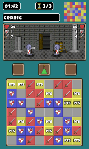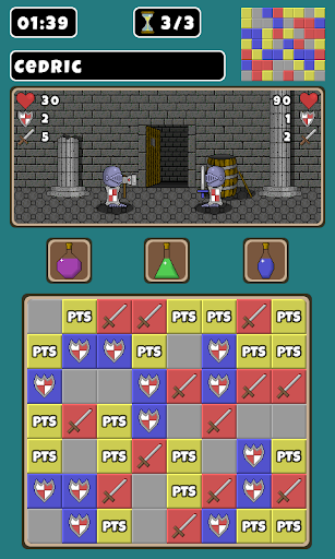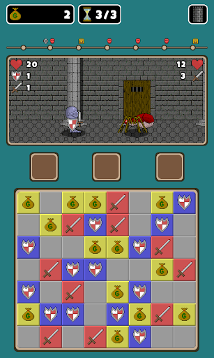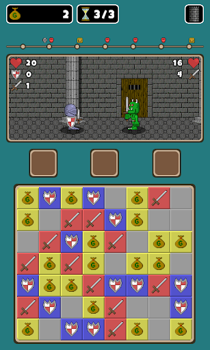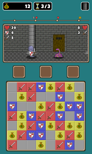 Explorez un donjon et combattez des monstres redoutables à l'intérieur. Utilisez vos compétences de match 3 pour attaquer et vous défendre.