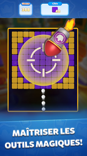 ►Au toucher, contrôlez la direction du lancement de la balle et elle volera vers vos briques cibles.