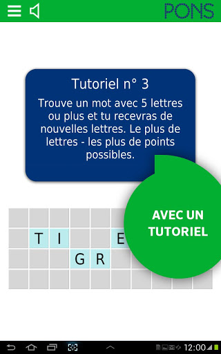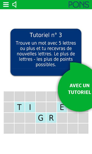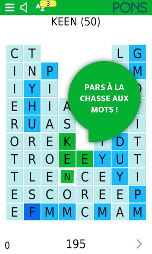 Que ce soit dans le train, au feu rouge ou tranquillement installé dans votre canapé, enrichissez à tout moment votre vocabulaire de façon ludique grâce à l’application PONS SpellFlash. Le but du jeu est de former des mots aussi longs que possible à partir d’une sélection de lettres. Plus les mots que tu trouves sont longs, plus tu marques de points. Grâce au mode intelligent « Smart », il est possible de découvrir des mots et de consulter rapidement et simplement leur signification.