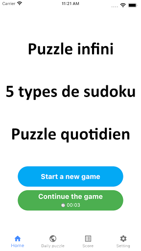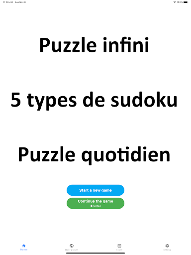 Vous pouvez jouer à 5 types de jeux Sudoku.