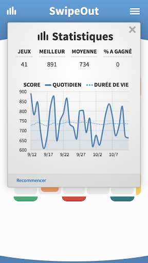 Suivez vos meilleurs scores et vos scores moyens sur SwipeOut avec notre outil de suivi des statistiques.