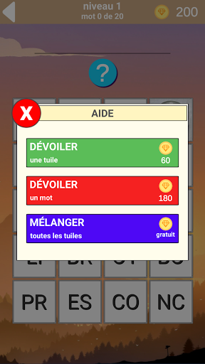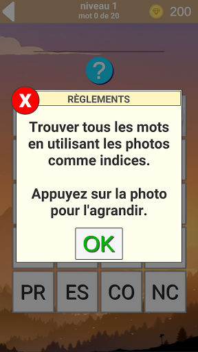 Le processus du jeu est divisé en deux types, chaque niveau se compose de vingt mots, les leçons du jeu sont divisées en photos et les réponses qui sont divisées en syllabes, votre tâche est de regarder la photo pour deviner et composer un mot de syllabes, lorsque vous cliquez sur une photo, l'image peut être augmentée. Ce merveilleux jeu a été créé pour jouer en compagnie d'amis, de famille et d'amis. Jouez à votre choix en: anglais, français, allemand, russe, italien et portugais.