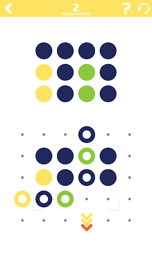 Line Up the Dots est un casse-tête minimaliste et coloré. Votre but est de réorganiser les points afin de correspondre au modèle qui vous est présenté. Si vous avez fait une erreur vous pouvez annuler vos déplacements, mais le nombre de coups est limité. Chaque puzzle peut être joué plus d'une fois avec des résultats différents. Vous pouvez utiliser des indices pour vous aider à démarrer, mais attention vous pourriez utilisé tout vos indices avant votre que votre puzzle soit terminé! Les niveaux commencent simplement et progresse jusqu'à ce que votre esprit soit mis à l'épreuve.