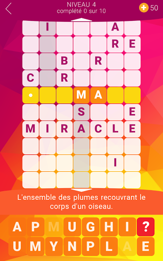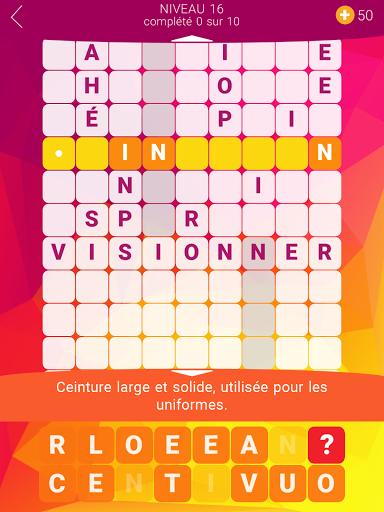 Une expérience de mots croisés rafraîchissante! Contrairement à un mot croisé typique, les mots sont empilés les uns sur les autres. Essayez de deviner tous les mots et de résoudre tous les niveaux! Certaines réponses sont simples, d'autres sont assez difficles. Ce jeu de mots croisés est un excellent entraînement pour les cellules de votre cerveau!