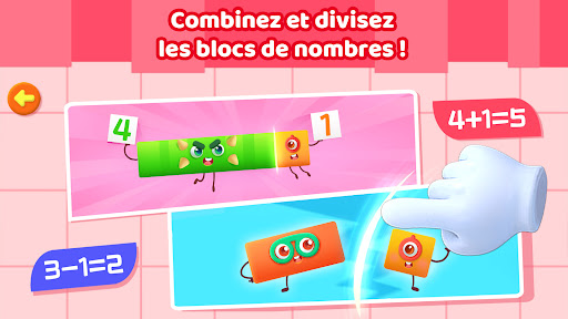 Aimez-vous les blocs de construction? Il faut donc que vous jouiez absolument à ce jeu ! Divisez et combinez les blocs de nombres pour terminer le jeu. Il y a 10 niveaux de jeu disponibles pour que vous appreniez à faire des additions et des soustractions. Vous pouvez également obtenir 10 adorables petits elfes !