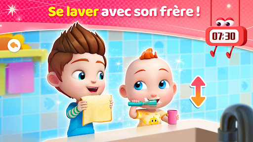 Le matin ! Le frère et la sœur ont déjà commencé à se brosser les dents. Maintenant, c'est à votre tour d'apprendre à JoJo à se brosser les dents et à se laver le visage. Voilà qui est fait. La merveilleuse journée avec la famille de JoJo a commencé !