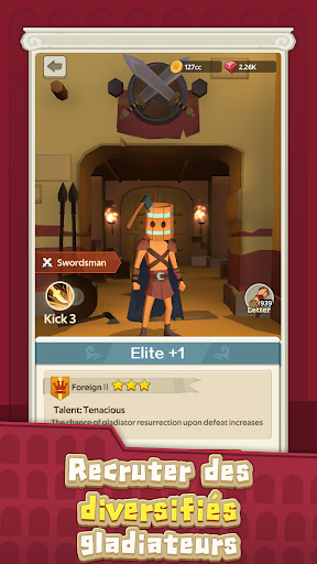 Ce jeu mobile de gestion de combat se déroule dans la Rome antique. Le joueur entre dans la peau d'un noble romain qui doit recruter et former des gladiateurs au combat afin d'obtenir des ressources et de renforcer le processus d'entraînement. Au fil de l'aventure, le joueur en apprend plus sur les gladiateurs de la Rome antique.