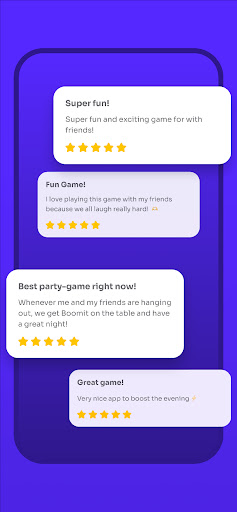 Boomit Party est là pour offrir un jeu amusant et engageant pour que des amis puissent jouer tous ensemble. Que ce soit lors d'une soirée, dans un bar ou simplement à la maison, Boomit Party est le moyen idéal de briser la glace et de s'amuser. Avec différents modes de jeu et catégories, il y en a pour tous les goûts.