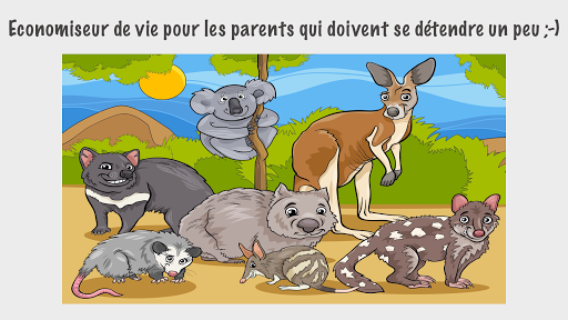 Notre application présente l'un des plus riches et des plus diversifiés choix de sons d'animaux sur le marché. Avec de multiples variations pour un même animal, votre enfant ou votre bébé peut entendre et apprendre la différence entre les variations d'un même animal.