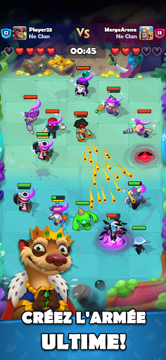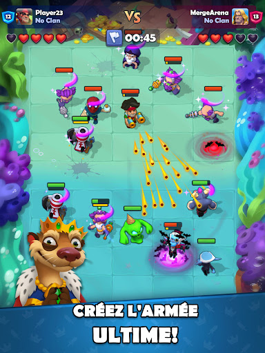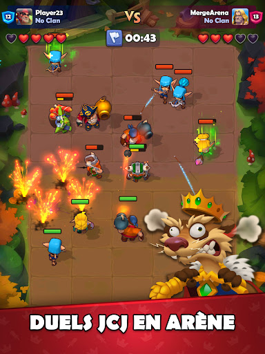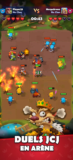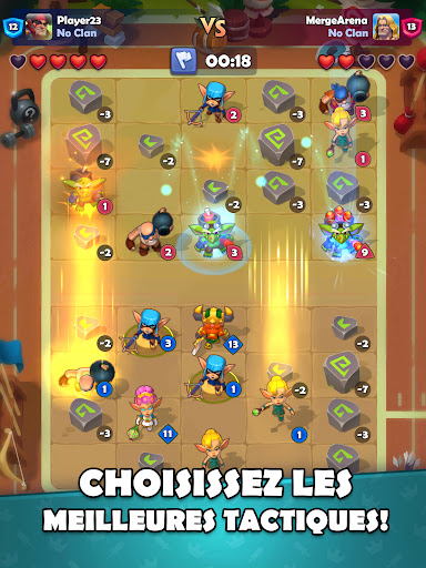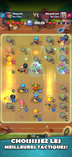 Bienvenue dans Merge Arena, braves guerriers ! Livrez des batailles intenses et défendez votre armée en temps réel contre d'autres joueurs en JcJ ! Découvrez le gameplay original de ce jeu de fusion Créez un deck de héros, source de votre puissance, et défendez votre équipe, remportez des combats, anéantissez des armées du monde entier et hissez-vous au sommet !