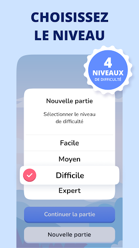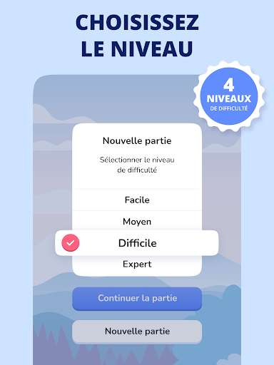 Choisissez le niveau qui vous convient et améliorez vos compétences. Faites-en un jeu d'enfant ou creusez-vous les méninges. Détendez-vous et laissez derrière vous toute forme d'agitation avec les niveaux faciles. Choisissez un niveau plus ardu afin de pratiquer vos aptitudes à la résolution de casse-têtes logiques.