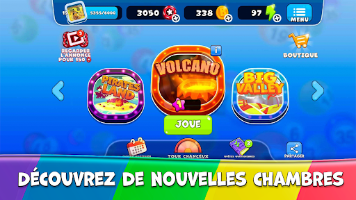 Dans Bingo Odyssey, vous trouverez de nombreuses salles différentes comme Magick trick, Summer vibes, Fire Temple, Pirates Land, Volcano, Big Valley, El Desierto, Retro City, El Rancho, Space Time.