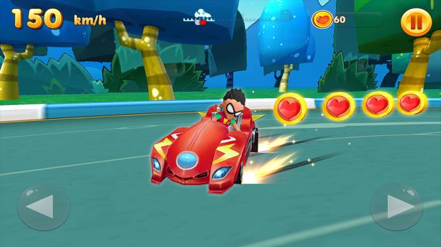Entrez dans le monde des titans de course avec la compagnie de votre héros adolescent robin. Faites la course contre un champ de titans rivaux, chacun avec des personnalités uniques et des capacités spéciales. Rassemblez une collection de bonus fous et laissez votre héros adolescent robin vous montrer ses pouvoirs de super-héros. Débloquez et améliorez une variété de voitures. Testez vos compétences dans 2 modes de jeu différents sur 40 pistes de course 3D imaginatives, contre les impressionnants titans en transformation.