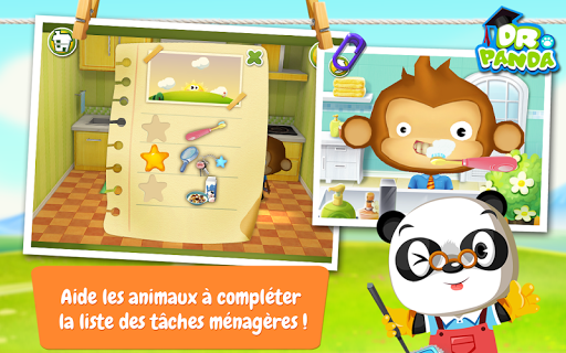 Retrouvez dans la maison de Dr. Panda, 4 amusantes histoires que vos petits doigts pourront explorer. Du matin jusqu’au soir, chaque animal est occupé à sa tâche ménagère! Nos petits joueurs pourront aider les animaux à se décharger de certaines tâches et se familiariser avec celles-ci. Grâce à cette liste de tâches à réaliser, les enfants pourront développer le sens de la responsabilité tout en s’amusant.