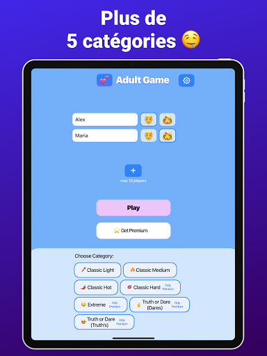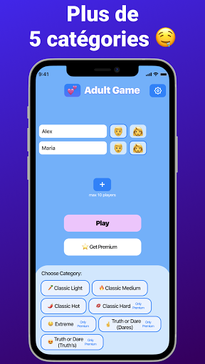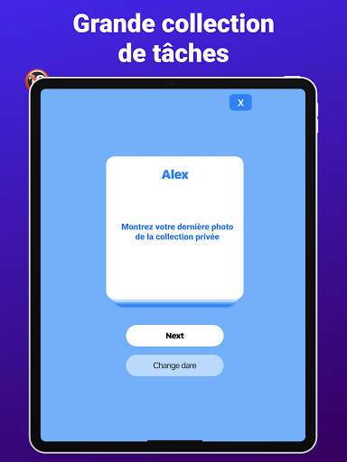 Le jeu Action ou vérité est divisé en 7 niveaux de difficulté. Trouvez l'équilibre parfait entre les niveaux - activez et désactivez le niveau souhaité. Vous pouvez tout choisir à la fois!