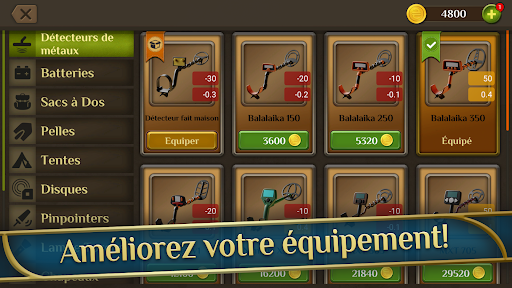 Ameliorez votre détecteur de métaux ; Améliorez votre équipement pour trouver des découvertes plus précieuses.