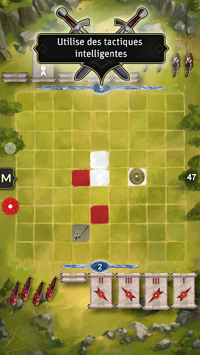 Positionne tes chevaliers avec habileté, lance tes troupes et conquière le plus de surfaces connexes possible. Gêne ton adversaire, contrecarre ses projets et perce ses rangs.