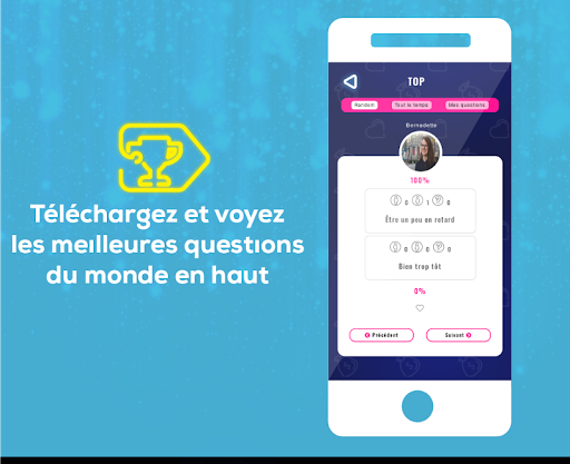 • 🏆 Mode jeu, top. Inscrivez-vous, créez et notez les meilleures questions du monde!