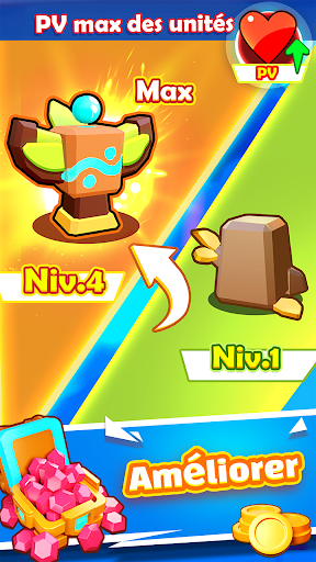 Regardez des batailles automatiques spectaculaires sans fin et défendez votre royaume alors que la guerre roguelike se déroule sur de nombreux niveaux !