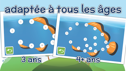 Cette app est adaptée à tous les âges, en changeant simplement la taille des points et le mode de tracé vous en réduirez ou augmenterez la difficulté. Le “tracé libre” permet à l'enfant de dessiner seul d'un point à l'autre. Le mode “ligne droite” est adapté aux plus petits pour les aider à complèter le contour du dessin en appuyant simplement sur le numéro ou la lettre dans l'ordre. Un système d'aide guidera l'enfant pour éviter qu'il reste bloqué.
