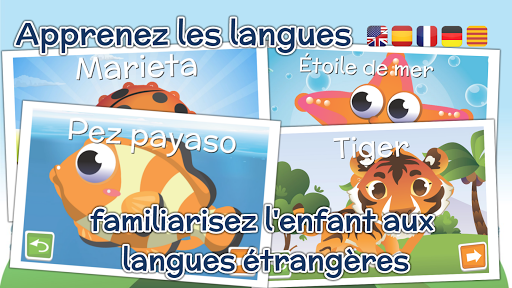 L'app peut aussi aider à familiariser l'enfant aux langues étrangères. En changeant la langue de l'app l'enfant apprendra l'aphabet et les chiffres.