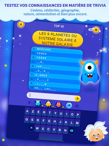 Commencez votre niveau et vous recevrez une invitation dans l'une de nos nombreuses catégories. Il peut s'agir du Top 10 des plus grands animaux, ou peut-être du Top 10 des héros de merveilles les plus populaires, ou encore du Top 10 des superproductions des années 90. Il y a tant de catégories amusantes et intéressantes pour divertir tout le monde et pour tester vos connaissances en matière de quiz ! Les récompenses quotidiennes vous fournissent des pièces qui peuvent être utilisées pour des powerups afin de vous aider si vous êtes bloqué.